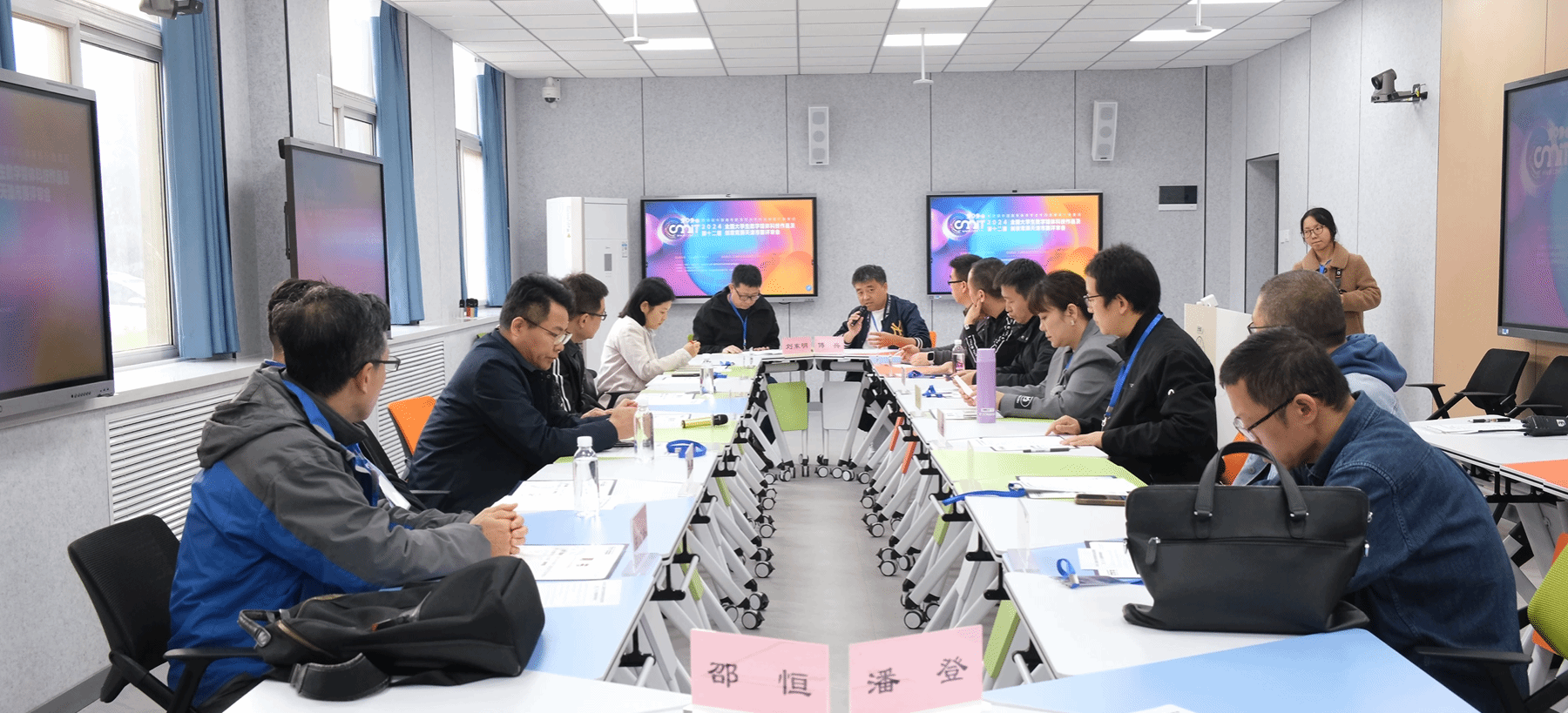 2024年11月2日,天津省赛秘书处工作人员8人,联合天津市各高校评审、监审专家14人,组织学生志愿者18人,在教务处杨慧处长的带领下,完成了独立评审17个赛道的省赛作品评审工作。