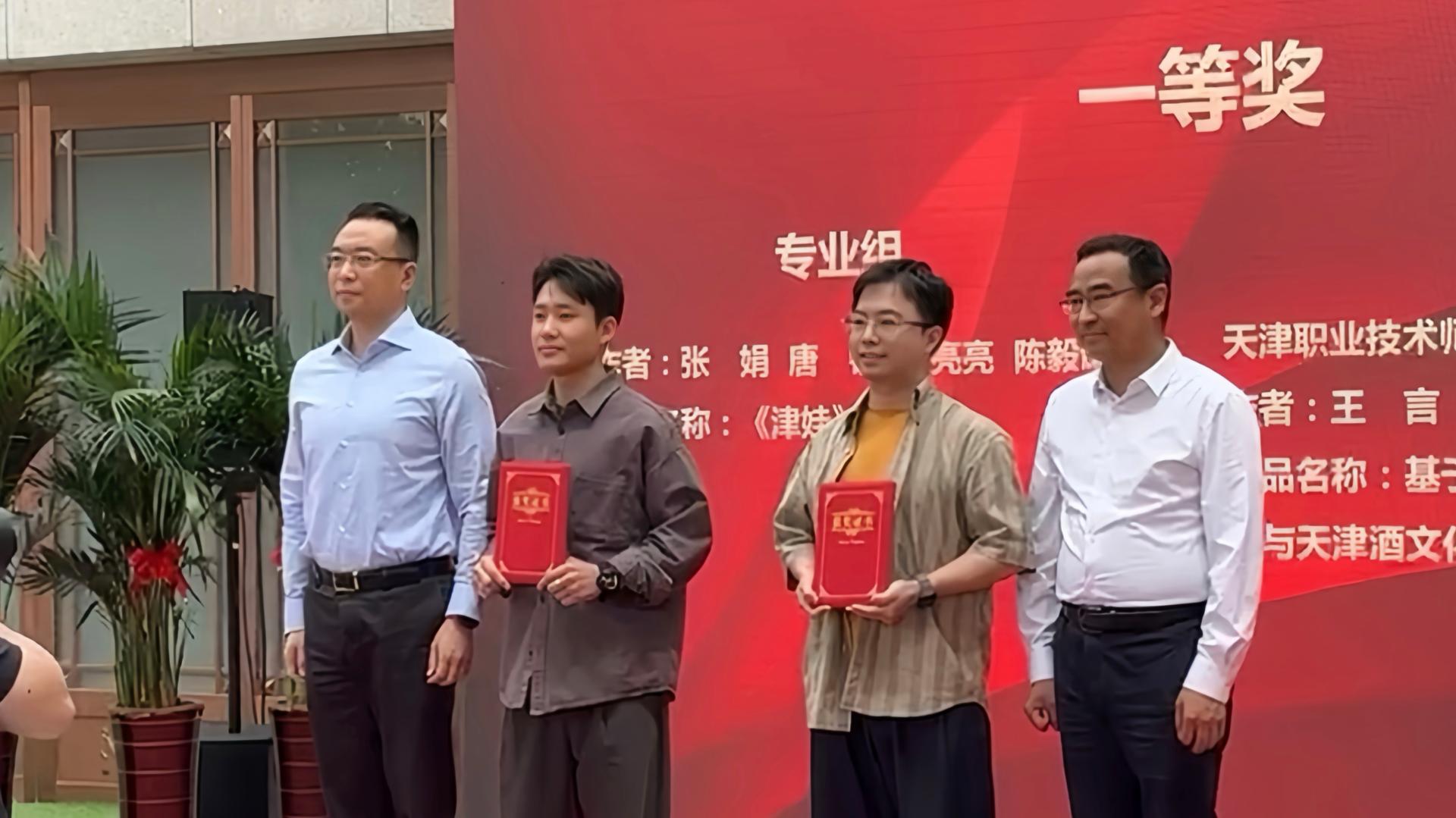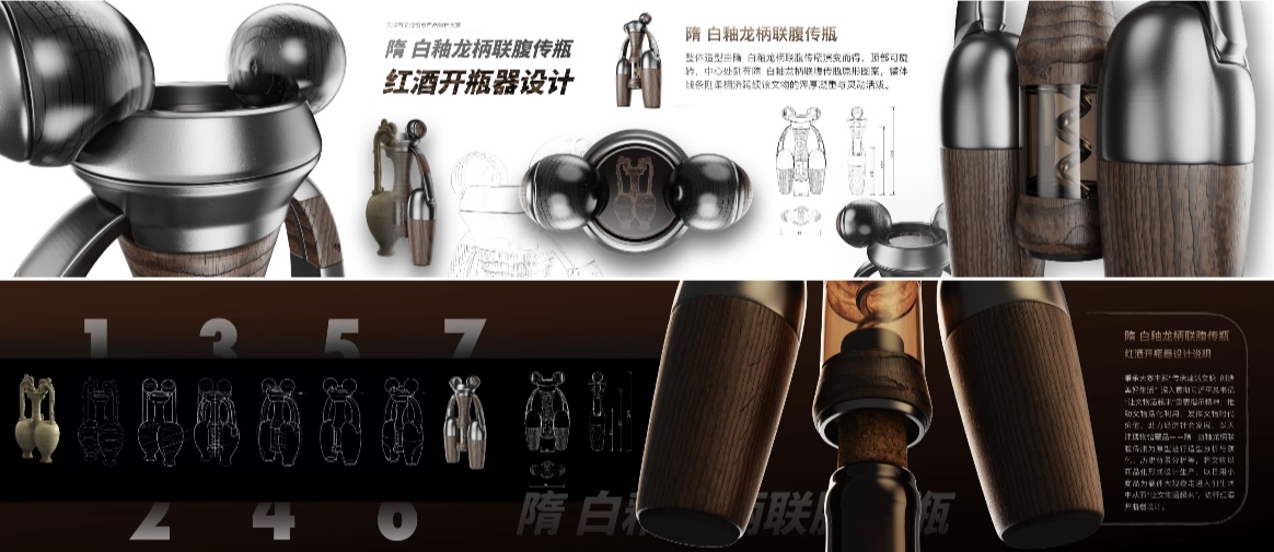 周致欣教授指导的22级研究生王言同学的参赛作品“基于天津博物馆藏品隋-白釉龙柄联腹传瓶与天津酒文化相结合的开瓶器设计”脱颖而出,斩获学生组一等奖。在接受天津日报记者采访时,他说:“这件文创设计作品的创作灵感来源于天津博物馆的一件非常重要的藏品——隋•白釉龙柄联腹传瓶,瓶身造型独特,展示了隋代高超的制作工艺和匠心独具的设计水平,给人留下深刻的印象。开瓶器设计正是以此为原型进行造型分析和演化,顶部可旋转,中心处刻有文物原形图案,延续这一文物的浑厚凝重与灵动活泼。”该作品受到大赛评审专家的高度赞赏和肯定。