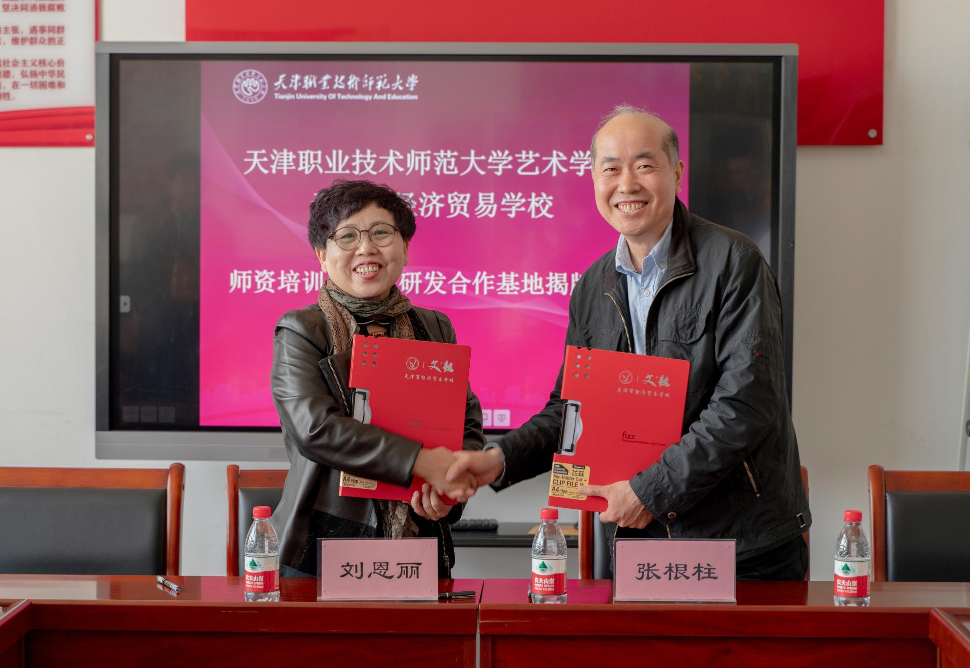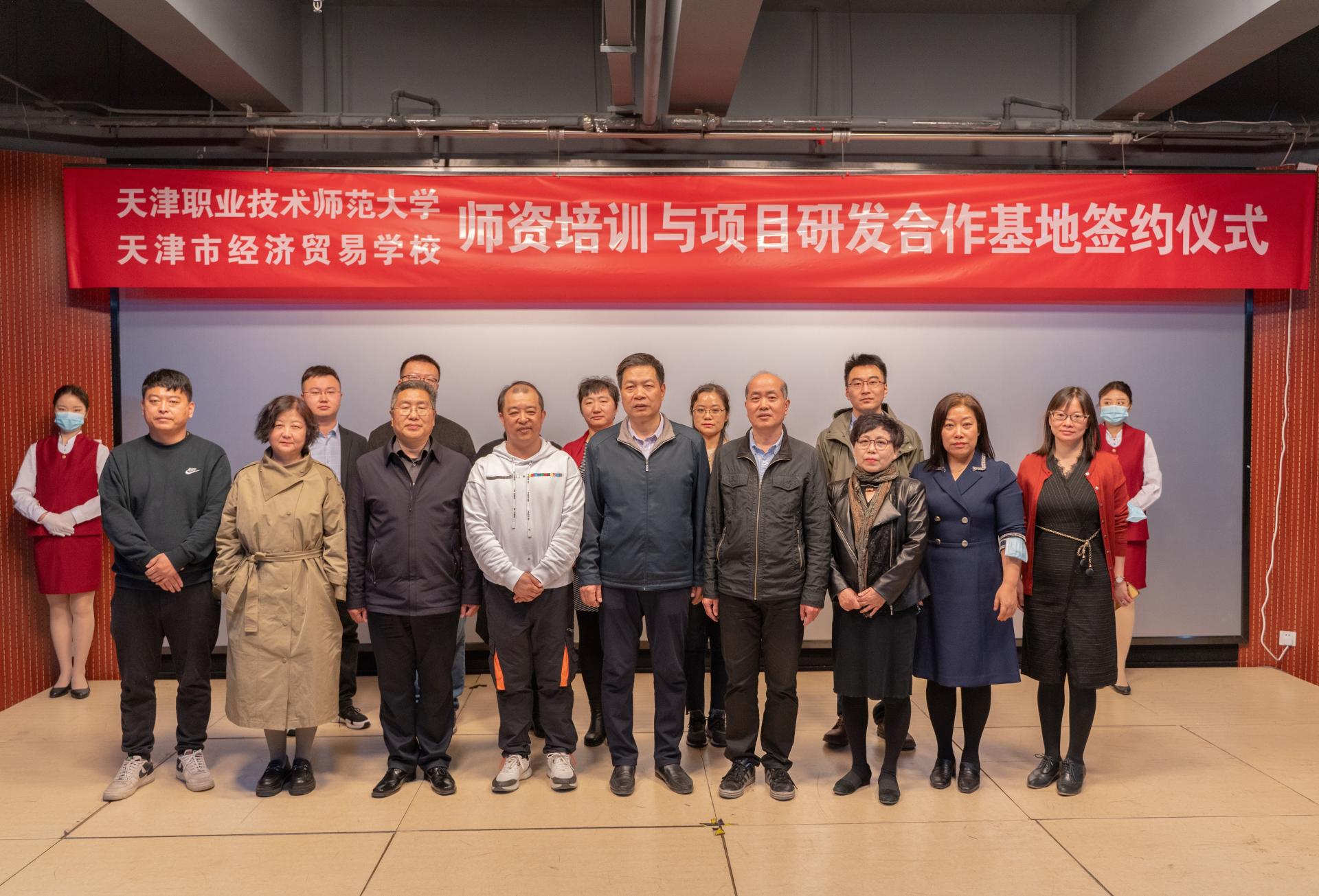 与天津市经济贸易学校建立师资培训和项目研发合作基地,并进行签约揭牌仪式。