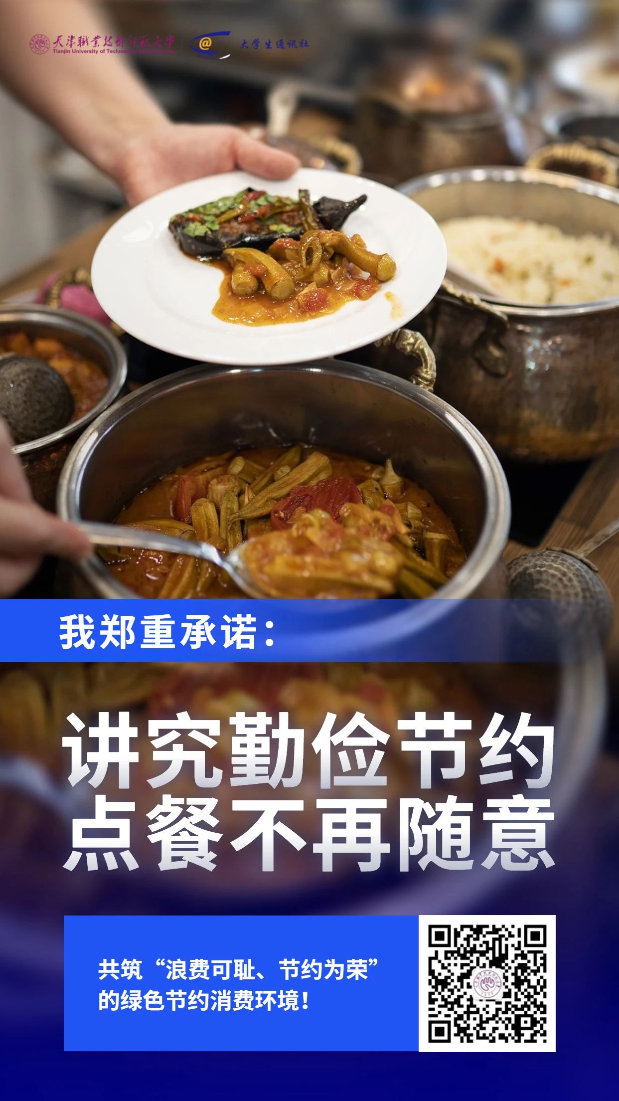 “历览前贤国与家,成由勤俭败由奢。”勤俭节约历来是中华民族的传统美德。“一粥一饭,当思来之不易;半丝半缕,恒念物力维艰。”节约,于我们每个人而言,不仅仅是一种美德,一种品质,更是一份责任,一份义务。近日,习近平总书记对制止餐饮浪费行为提出重要指示。他指出,餐饮浪费现象,触目惊心、令人痛心!尽管我国粮食生产连年丰收,对粮食安全还是始终要有危机意识,今年全球新冠肺炎疫情所带来的影响更是给我们敲响了警钟。因此,为贯彻落实习近平总书记有关坚决制止粮食浪费现象的指示,继续发扬艰苦奋斗、勤俭节约的优良作风,我们向全校同学发出节约粮食的倡议: