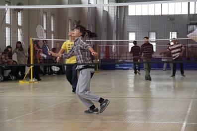 举办的首届羽毛球新生挑战赛在校大学生活动中心举行。参加挑战赛的是学院13级新生。