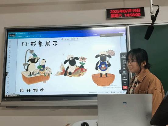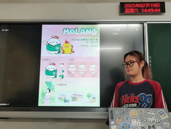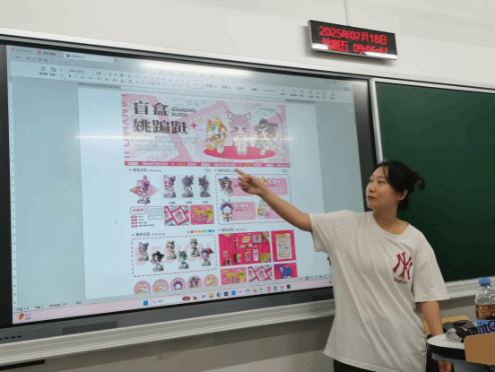 在作品点评环节,学员们分享了自己作品创作的理念、设计步骤、AI工具辅助设计等方面,力求作品符合企业赛道主题要求,精益求精。两位企业专家对学员的作品一一进行点评,肯定了大家的创作热情和作品水平,希望在创作时更加符合品牌形象最显著的特征,并注意后续产品的宣传和商业运营等。