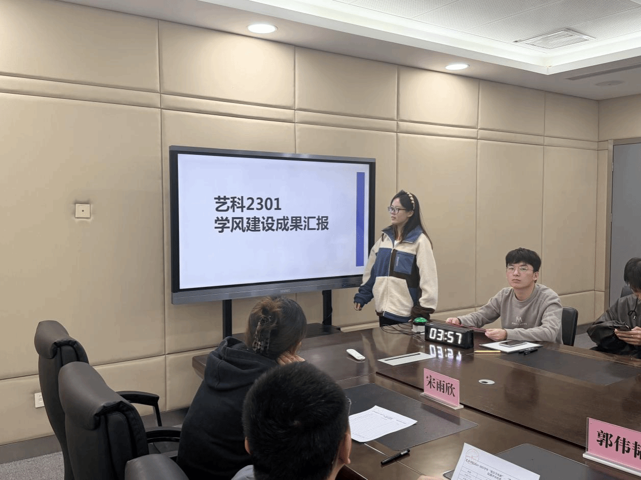 来自2023、2024两个年级共17个班的班委代表依次登台进行班级展示。他们借助精心制作的PPT、内容详实的音(视)频资料,从班级学风建设制度、学业成绩、课堂表现、科研创新、实践活动、文化氛围等多个维度,全面生动地展示了本班在学风建设方面的特色做法与丰硕成果。一个个亮眼的平均学分绩点、一项项获得的集体荣誉、一幕幕师生互动与学业帮扶的温馨场景,充分展现了艺术学子勤奋笃学、锐意进取的精神风貌,以及各班集体团结协作、追求卓越的良好班风。精彩的汇报不仅是对过往成绩的总结,更是对未来持续深化班级特色学风建设的展望,为现场师生呈现了一场内容丰富、亮点纷呈的学风建设交流盛宴。