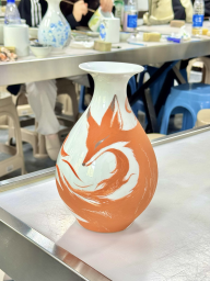 10月22日至25日,拉坯、泥塑、釉下五彩绘制等基础课程循序渐进,同学们从生疏到熟练,在泥土与色彩的碰撞中感知陶瓷创作的独特魅力;26日的釉下青花绘制课程中,每人完成杯子、碗、小盘子、小花瓶四件作品,将创意融入传统工艺。