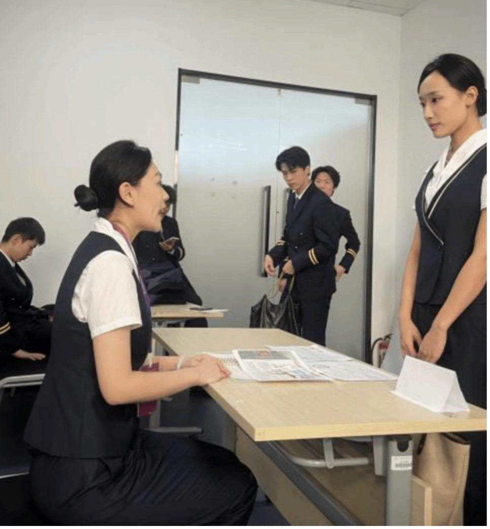 “CA1503航班经济舱超售,需协调12名旅客自愿改签。”实训教室内,2022级学生李津严正面对突发特情。她快速调取旅客画像数据,结合舱位等级、会员积分等信息,用中英双语流畅沟通,最终在8分钟内完成旅客安抚与补偿协议签署。课程组引入航空公司真实案例库,将200余种特情浓缩为“值机三十六计”,学生需在模拟柜台同步完成行李称重、证件核验、紧急医疗呼叫等复合任务。“地勤服务是航站楼的‘神经末梢’,”企业讲师刘庭杉老师指着操作热力图解释,“学生的手势幅度、微笑频率甚至眼神落点都被纳入评估体系,唯有将标准刻入肌肉记忆,方能成就行云流水的服务美学”。