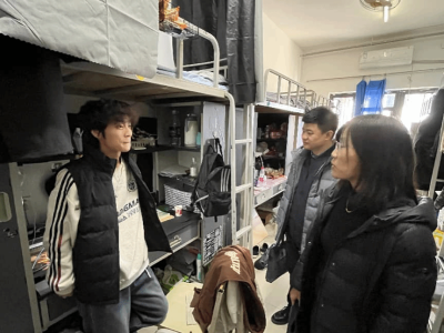 党委书记韩德新、党委副书记林娇以及全体辅导员深入学生公寓,开展安全卫生专项检查与元旦佳节走访慰问活动。